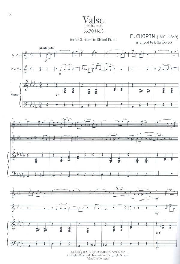 | Valse op.70,3 für 2 Klarinetten und Klavier Partitur und Stimmen | |