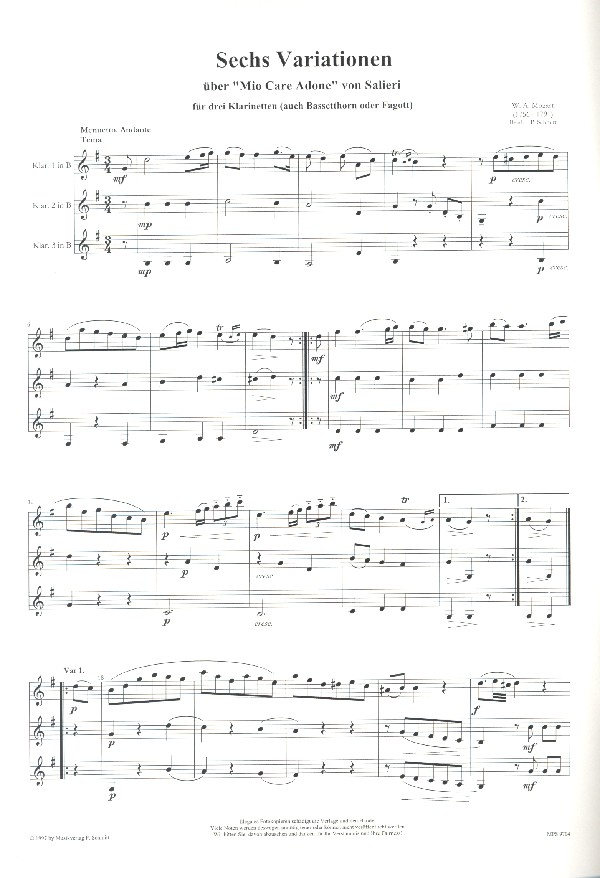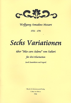 | 6 Variationen über Mio care adone von Salieri für 3 Klarinetten (Bassetthorn, Fagott) Partitur und Stimmen | |