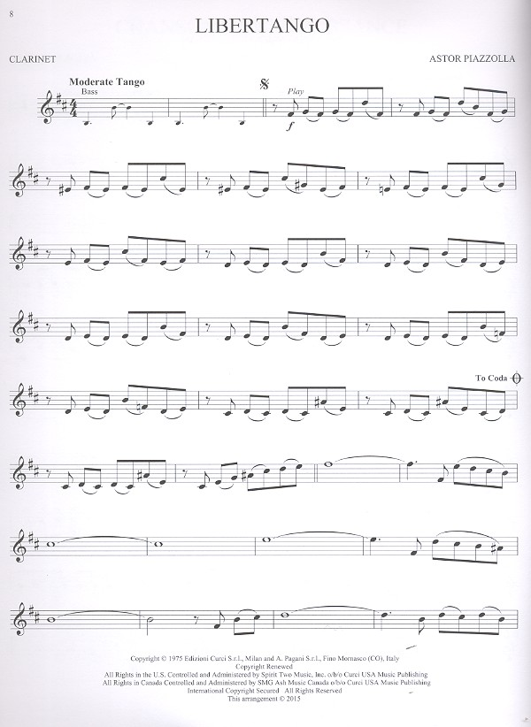 | Instrumental Playalong 14 Solo Arrangements Ausencias (The Absent) El viaje (The Voyage) Chanson de la naissance (Song of the Birth) Libertango Los sueńos (Dreams) Milonga Oblivion Ouverture from Famille d'artistes Sensuel (Sensual) Sentimental Sin rumbo (Aimless) Street Tango Tango final Vuelvo al sur (I'm Returning South) | |