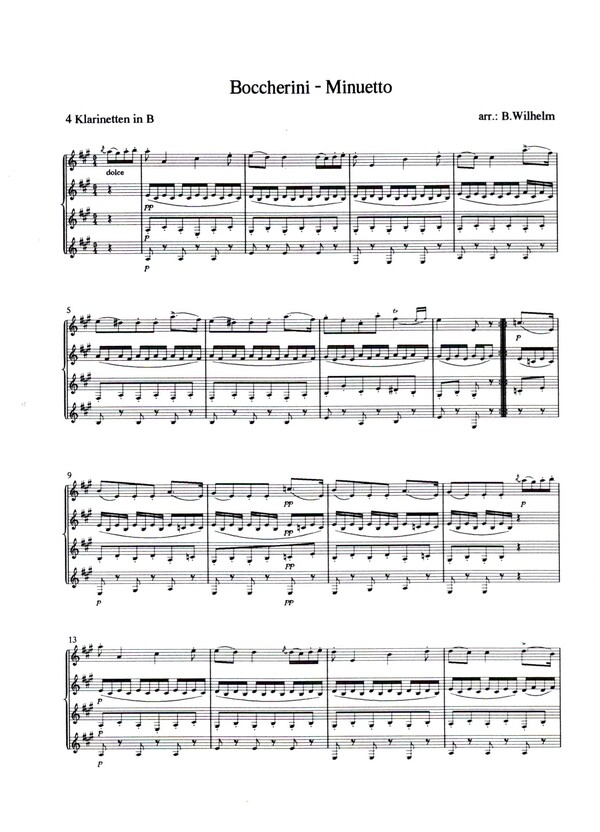 | Minuetto für 4 Klarinetten Partitur und Stimmen | |