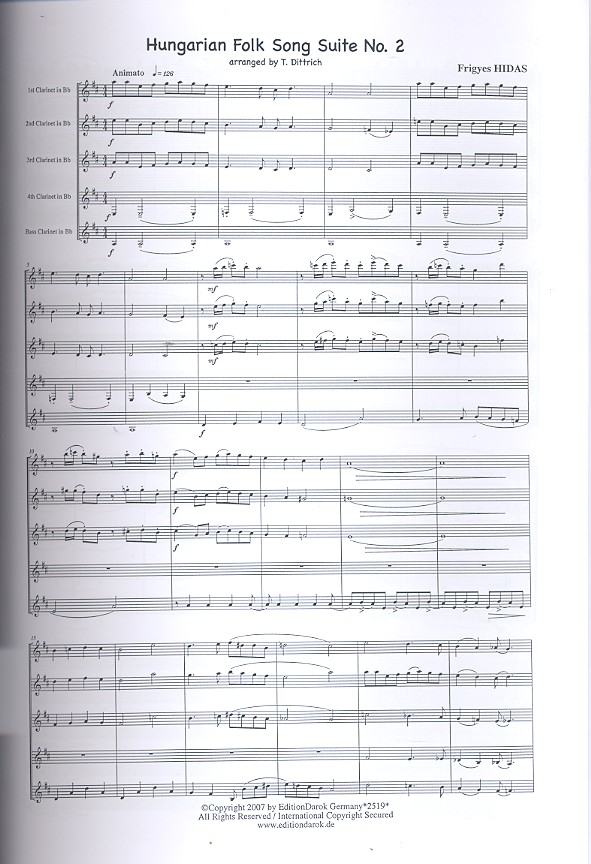 | Hungarian Folk Song Suite no.2: for 4 clarinets and bass clarinet score and parts | |