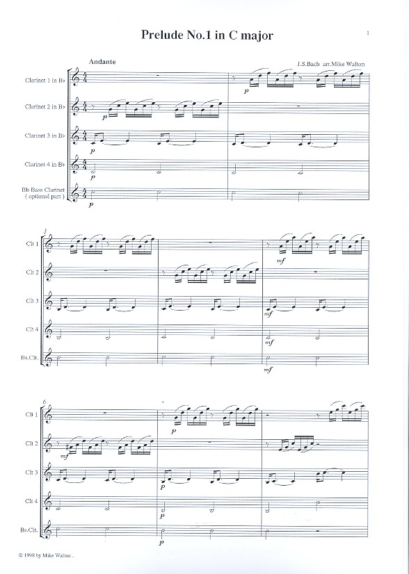 | Prelude no 1 in c for 4 clarinets score and parts | |