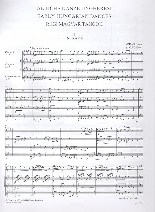 | Frühe ungarische Tänze aus dem 17. Jahrhundert für 4 Klarinetten (Es/B/B/Baß), Partitur und Stimmen | |