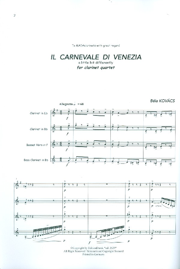 | Il Carnevale di Venezia a little bit differently for 4 clarinets score and parts | |