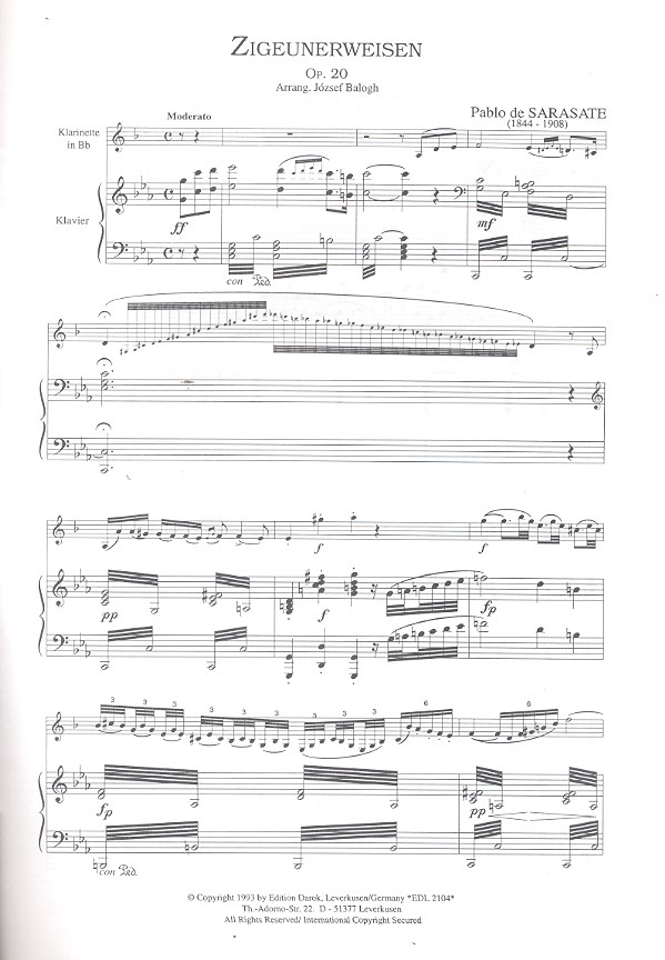 | Zigeunerweisen op.20 for clarinet and piano | |