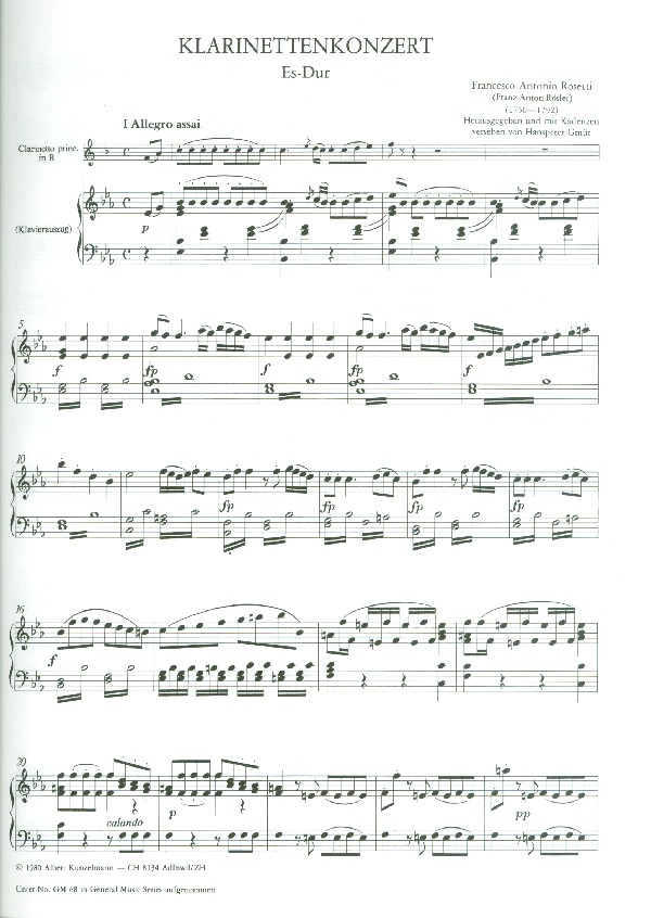 | Konzert Es-Dur für Klarinette und Orchester für Klarinette und Klavier | |