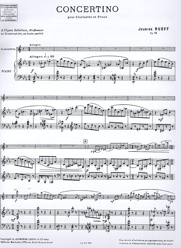 | Concertino op.15 pour clarinette et orchestre pour clarinette et piano | |