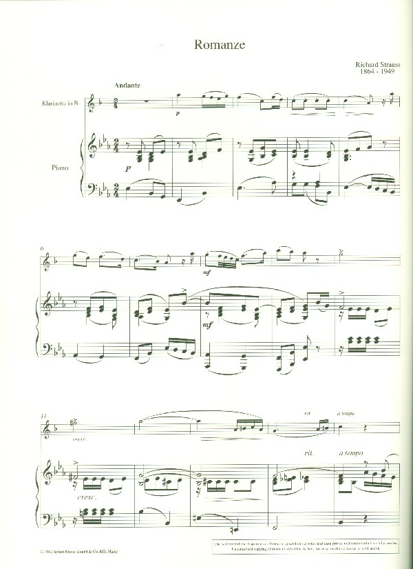 | Romanze Es-Dur o.op. AV61 für Klarinette und Orchester für Klarinette und Klavier | |