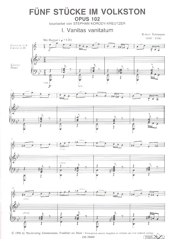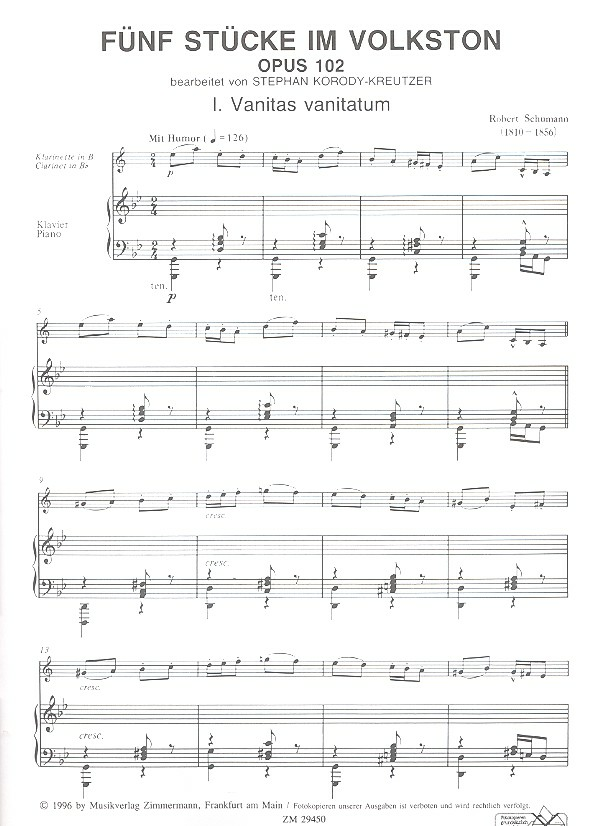 | 5 Stücke im Volkston op.102 für Klarinette und Klavier | |