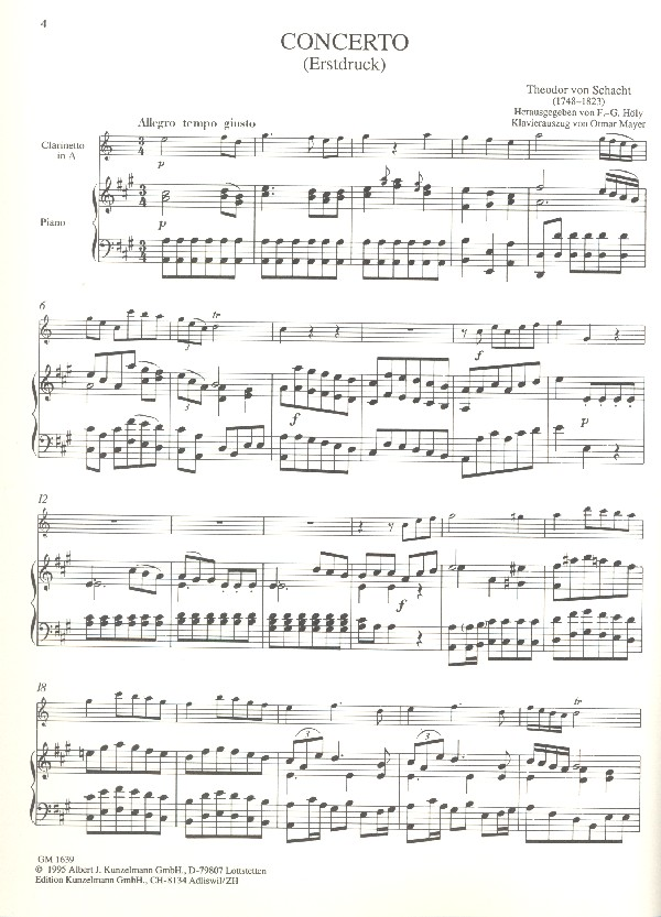 | Klarinettenkonzert A-Dur für Klarinette und Klavier | |