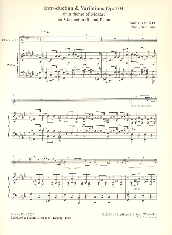 | Introduction and Variations on a Theme of Mozart op.104 for clarinet and orchestra clarinet and piano | |