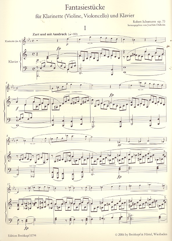 | Fantasiestücke op.73 für Klarinette in A (Violine, Violoncello) und Klavier | |