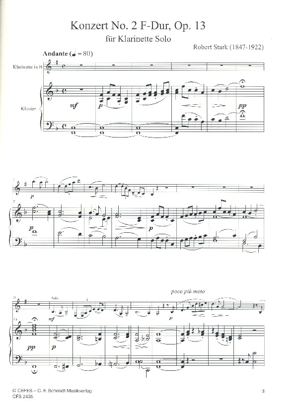 | Konzert F-Dur Nr.2 op.13 für Klarinette und Orchester für Klarinette und Klavier | |