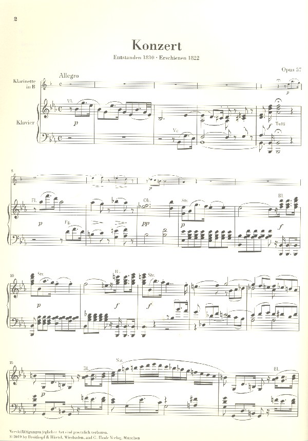 | Konzert Es-Dur Nr.2 op.57 für Klarinette und Orchester für Klarinette und Klavier | |