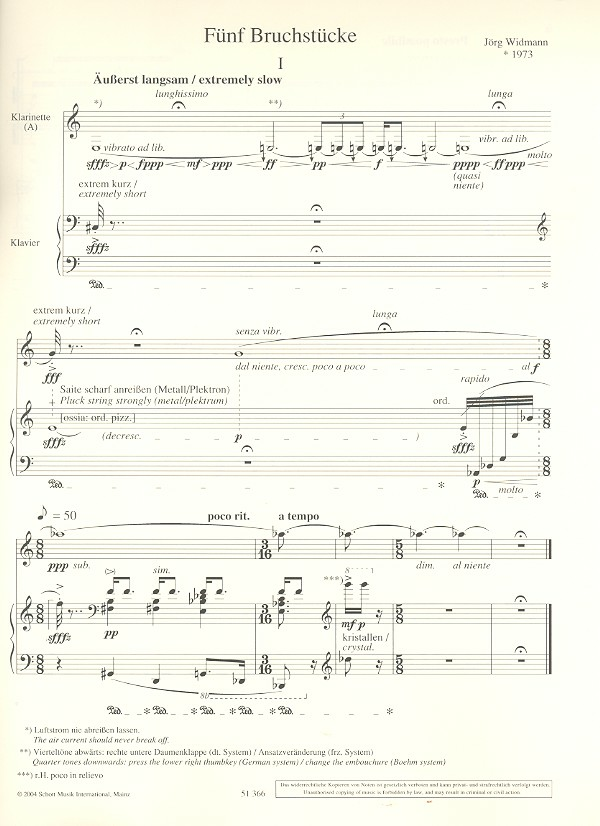 | Fünf Bruchstücke für Klarinette (in A und B) und Klavier | |