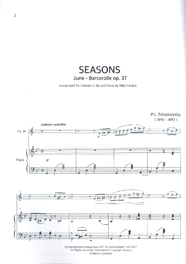 | Juni - Barcarolle op.37,6 für Klarinette und Klavier | |