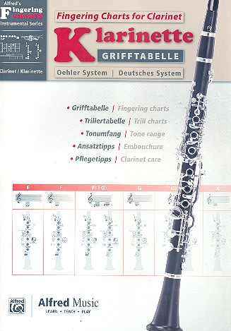 | Fingering Chart Trillertabelle Tonumfang Pflegetipps Ansatztipps Alfred's Grifftabelle für Klarinette deutscher Griffweise ist die zweisprachige (Deutsch und Englisch), umfassende und zugleich kompakte Sammlung der wichtigsten Griffe und Spieltechniken auf der Bb-Klarinette mit Oehler/Albert System. Neben den gängigen Normalgriffen findet der Klarinetteninteressierte Alternativgriffe, spezielle Trillergriffe und weitere nützliche Zusatzinformationen zu Pflege, Tonumfang, Ansatz, den Klarinettenbauteilen sowie Übungstipps. Alles auf 12 Seiten zusammengestellt und farbig bebildert unter der Mitwirkung von Wolfgang Güdden und Klaus Dapper. Ein ausführliches Nachschlagewerk ideal für Anfänger und Wiedereinsteiger! | |