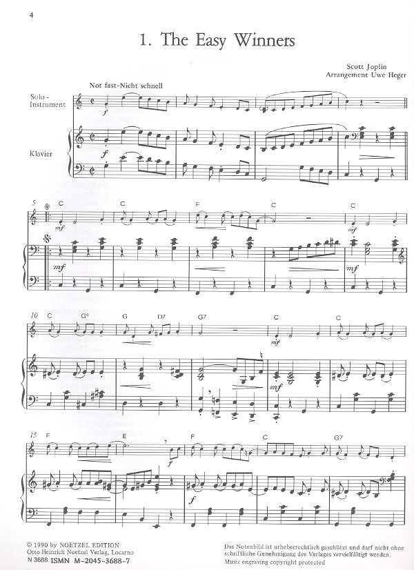 | 10 Ragtimes The easy Winners (Joplin) Peacherine Rag (Joplin) Maria's Rag (Heger) The Entertainer (Joplin) The Sycamore (Joplin) Dickie's Rag (Heger) Sunflower slow Rag (Joplin) The strenuous Life (Joplin) Little Annie's Swing Rag (Heger) The Ragtime Dance (Joplin) | |
