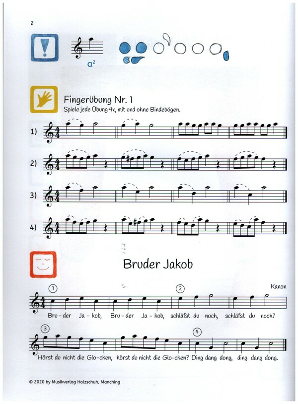 | Eine Schule für die Jüngsten Die Reihe Unterwegs mit der Querflöte richtet sich an Kinder ab 5 Jahren, die im Einzel- oder Partnerunterricht das Querflötenspiel erlernen. Im Vordergrund steht der Wunsch, die Schule möglichst schlank zu gestalten und alle Informationen, die den Schüler nicht direkt betreffen, auszulagern. Die wichtigsten Bausteine: - Einfache Erklärungen leicht verständlich für Kinder ab 5 Jahren - Vier Symbole zeigen an, was zu tun ist ohne große Worte - Duettspiel und Auswendigspiel von Anfang an für ein ganzheitliches Musizieren - Umfangreiche Zusatzmaterialien zahlreiche Stücke, Klavierbegleitungen und Übungen sowie der komplette Lehrerband und eine Elternbeilage stehen kostenlos online zur Verfügung unter www.holzschuh-verlag.de/unterwegs Band 3 Vorhang auf rundet die flötistische Grundausbildung mit der Ausweitung des Tonraums bis eł ab. Ein großes Thema ist die Erschließung der chromatischen Tonleiter sowie der enharmonischen Verwechslung. Der Schüler lernt alle Tonnamen kennen und kann sie sicher unterscheiden. Mit dem Abschluss von Band 3 hat sich der Schüler alles erarbeitet, was er zum selbstständigen, reflektierten Flötenspiel benötigt. | |