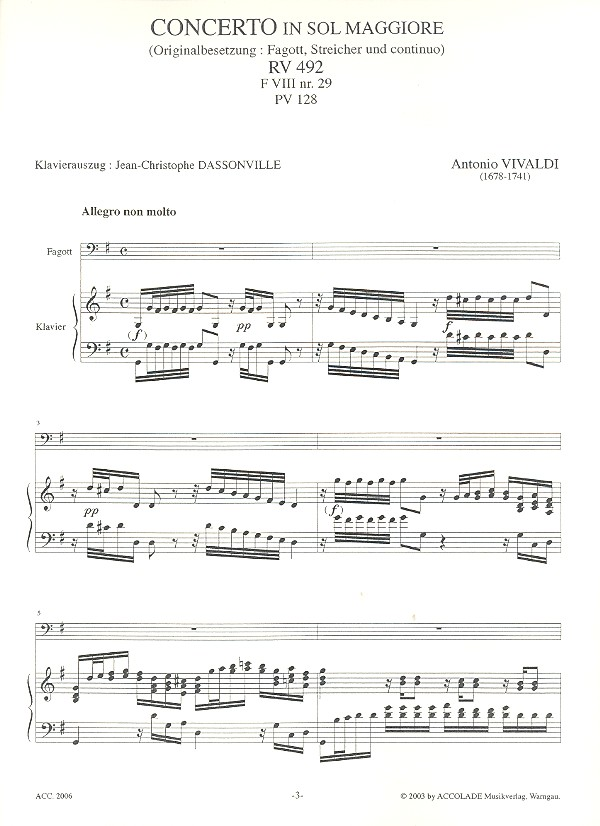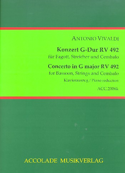 | Konzert G-Dur RV492 F:VIII,29 für Fagott, Streicher und Bc für Fagott und Klavier | |