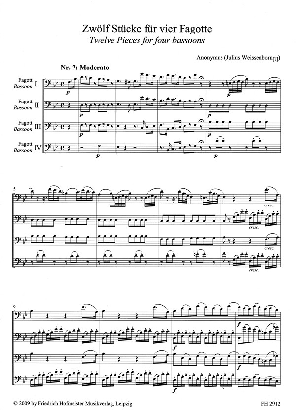Anonymus, 12 Stücke für vier Fagotte Bd.2