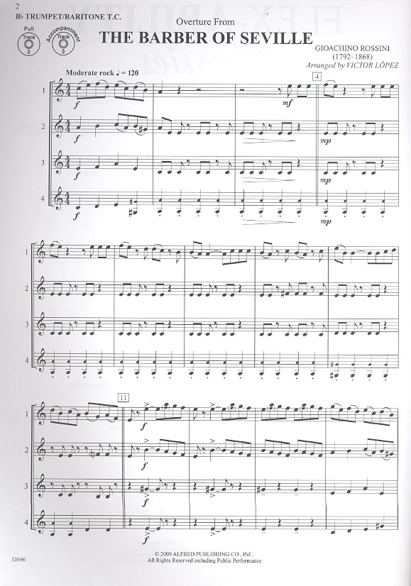 | The Barber of Seville (Overture, Rossini) Bourrée from Lute Suite no.1 (Bach) Habanera from Carmen (Bizet) Hungarian Dance no.5 (Brahms) Minuet from Anna Magdalena Bach Notebook (Bach) New World Symphony (Dvorak) Pomp and Circumstance (Elgar) Prince of Denmark's March (Clarke) Toreador's Song from Carmen (Bizet) William Tell (Overture, Rossini) | |