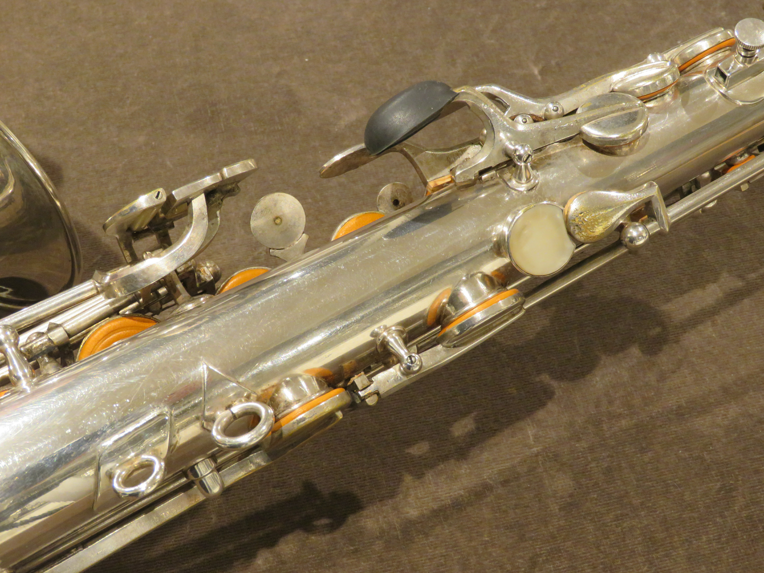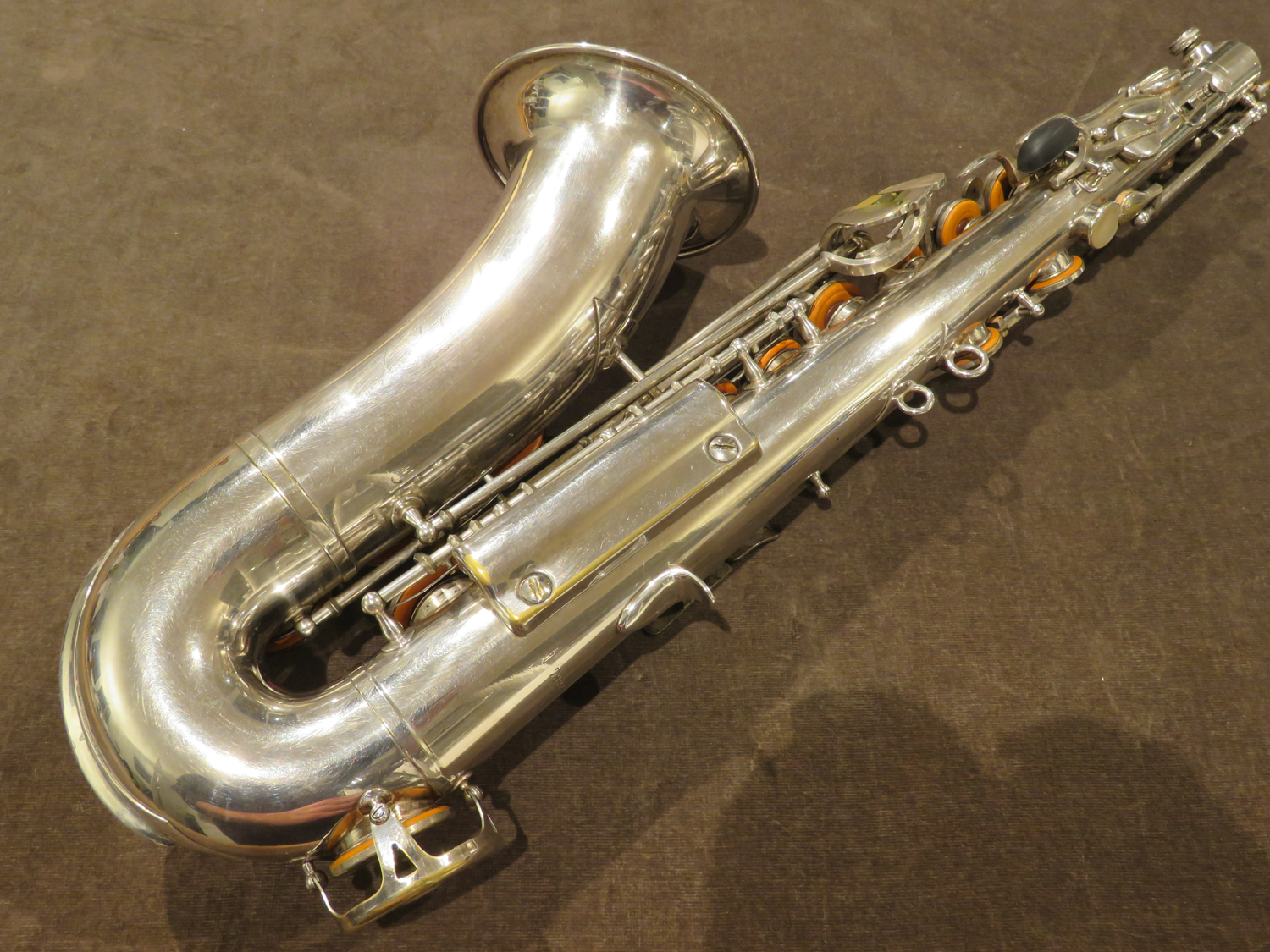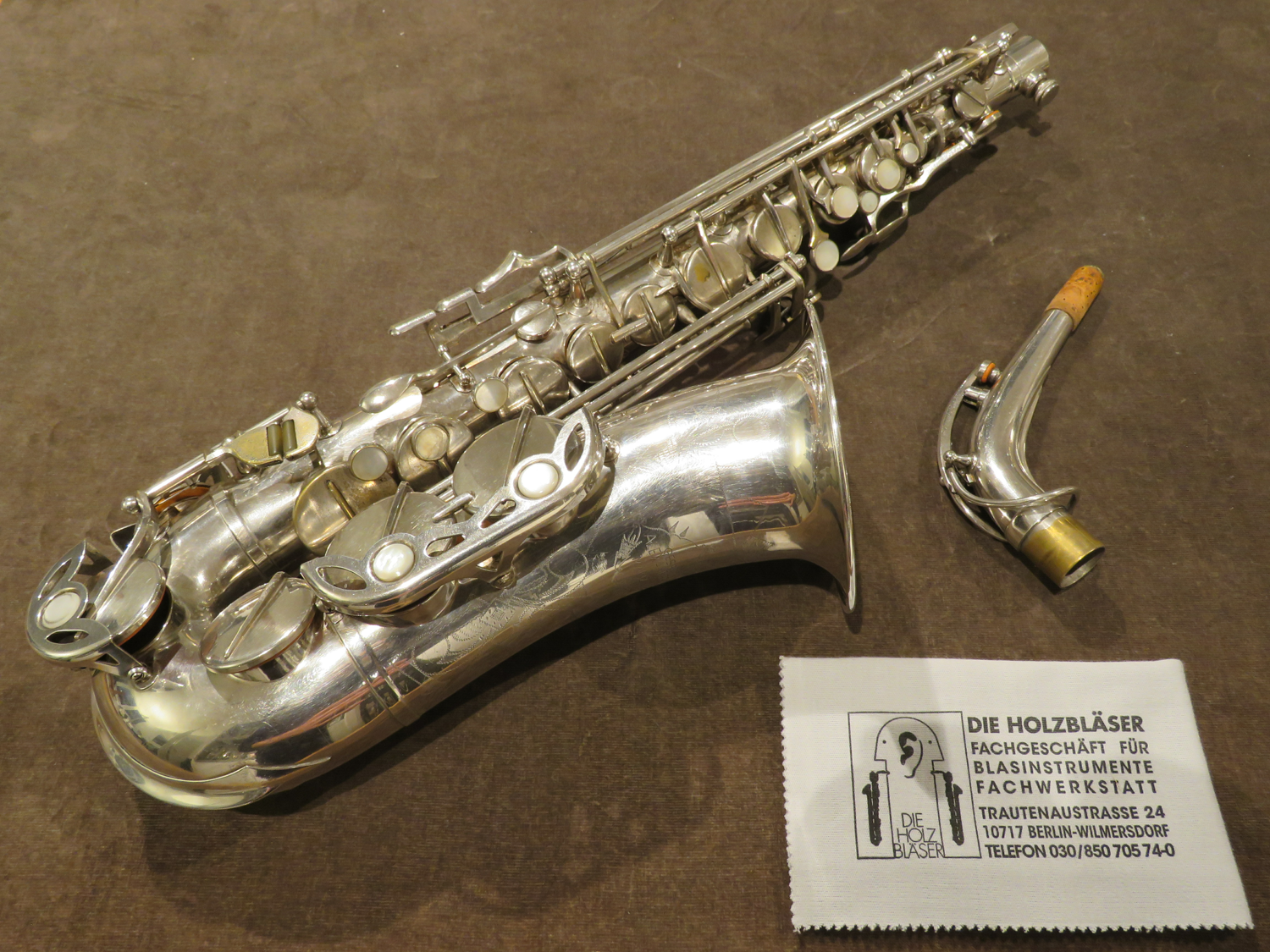 Altsaxophon, versilbert, Baujahr ca. 50er Jahre, OHNE Hoch-Fis, Versilberung komplett erhalten, generalüberholt, ohne Koffer, Verkauf im Auftrag.