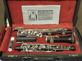 Full conservatory system, Halbautomatisch, Grenadilholz, versilberteMechanik mit Original Etui und Überzug. Guter Zustand, mechanisch einwandfrei, Verkauf im Auftrag.