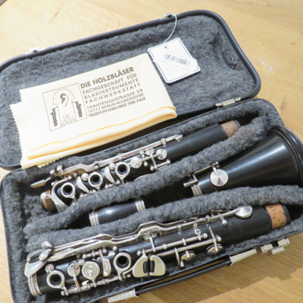Solisteninstrument, Voll-Oehler System , tief E/F Verbesserung, abstellbare H/Cis Verbindung, versilberte Mechanik, Formetui, mit einer Birne, guter Spielzustand, älterer reparierter Riss im Oberstück, nicht überholt, Verkauf im Auftrag.