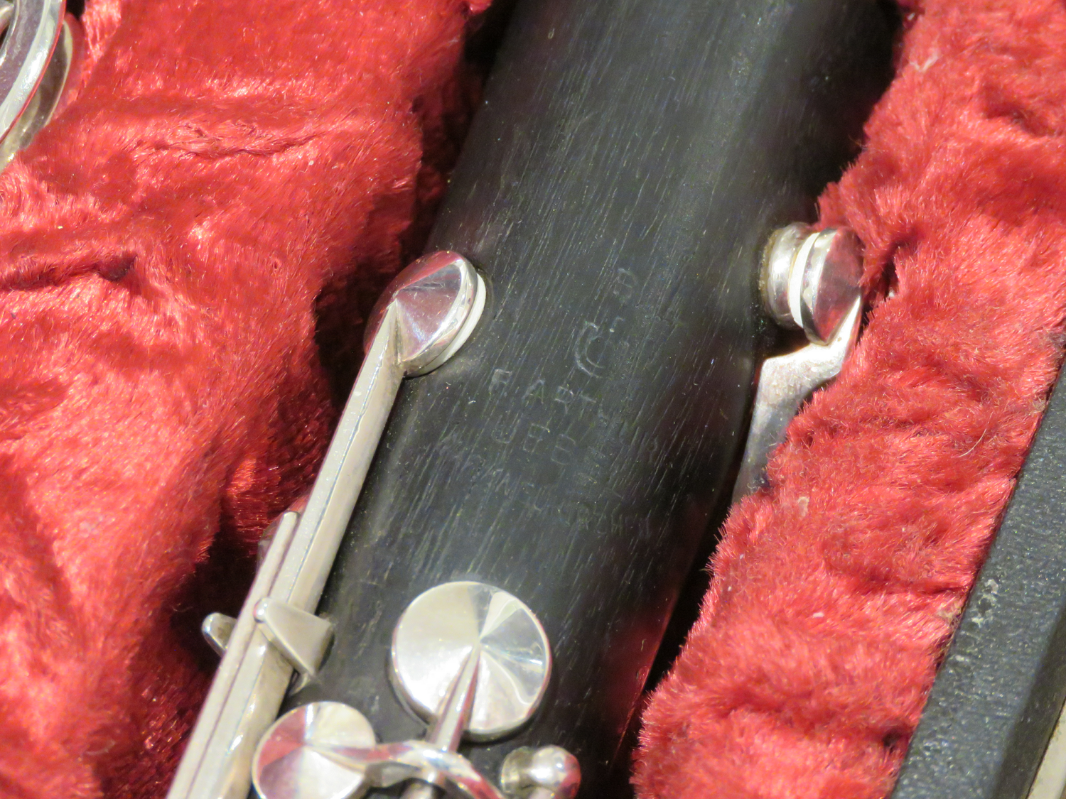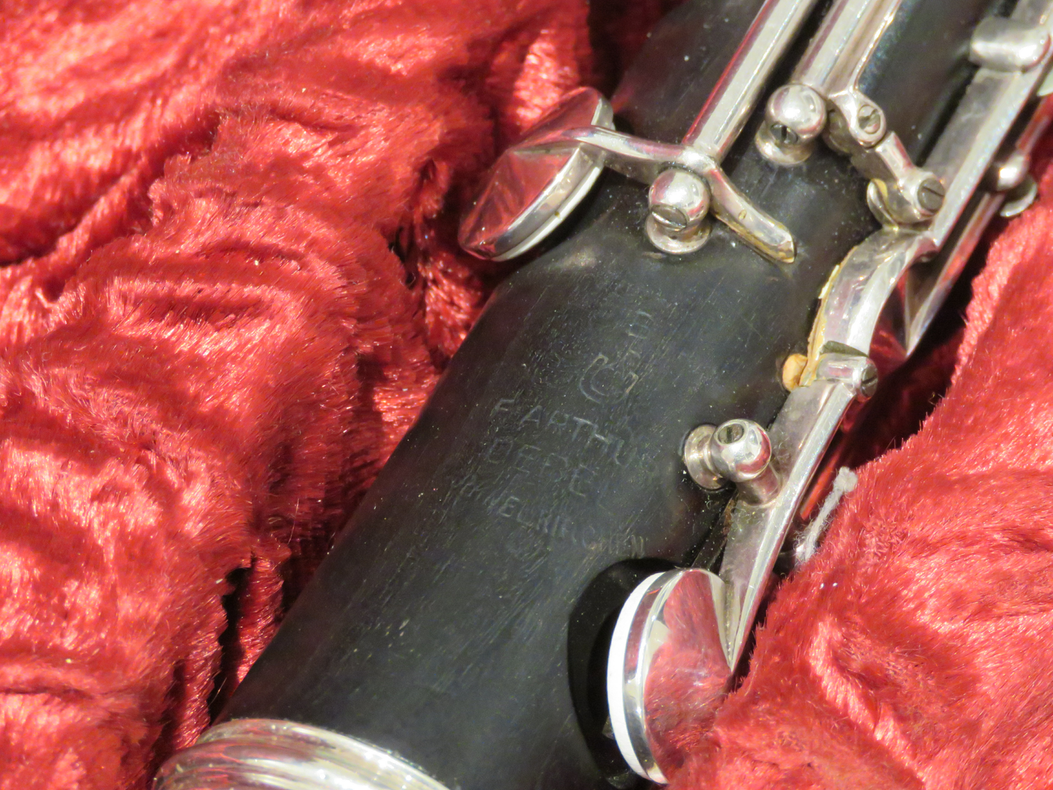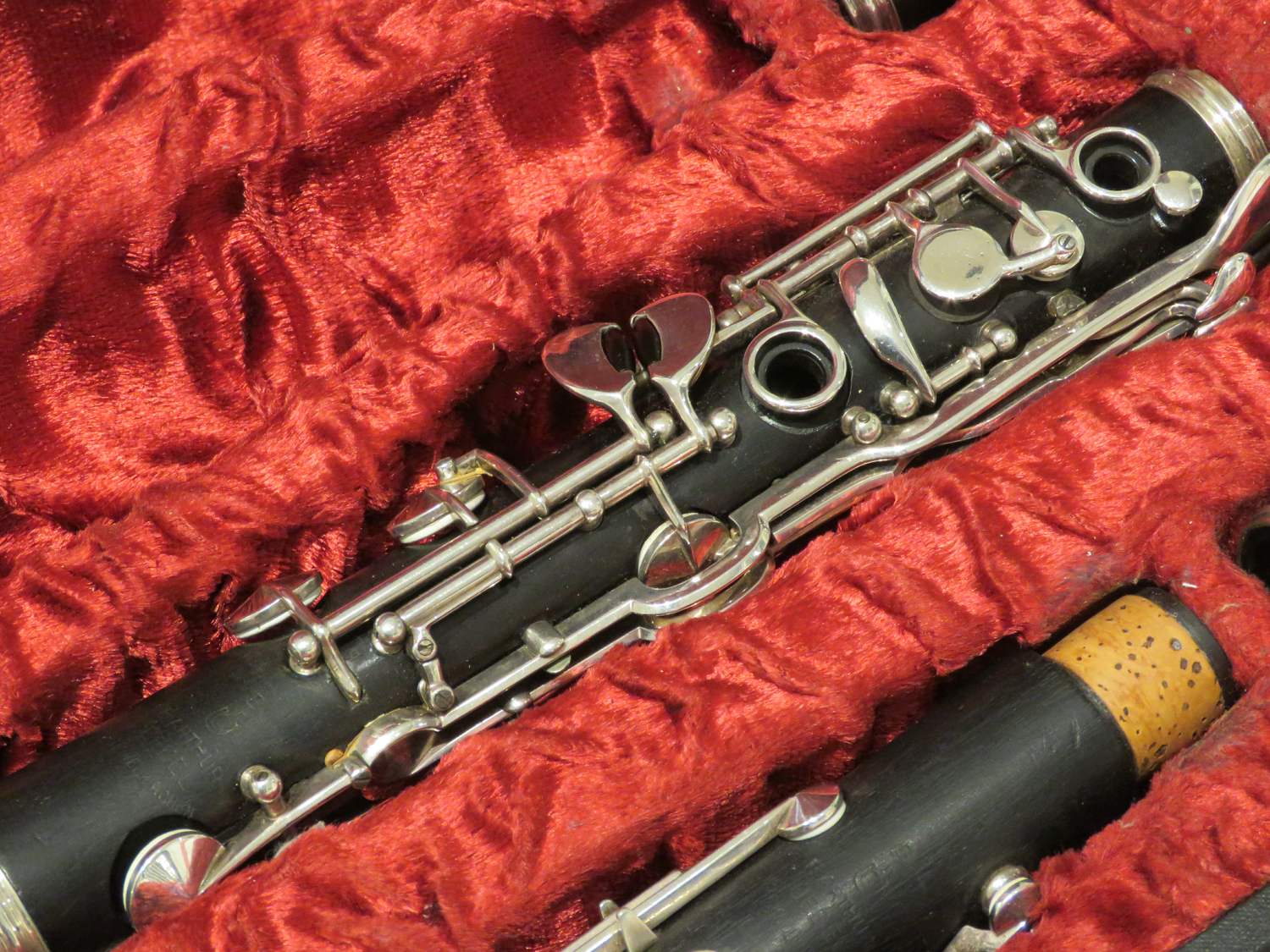 B-Klarinette von F.A.Uebel-Klarinetten im Volloehler-System mit tief E-Verbesserung und abstellbaren H-Cis-Triller. Komplett mit zwei Birnen. Das Instrument befindet sich in sehr gutem Zustand. Verkauf im Doppelkoffer im Kundenauftrag.