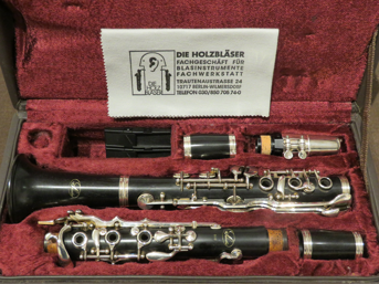 B-Klarinette Schreiber 26 In gutem Zustand. Grenadillholz, 20 Klappen, 6 Ringe, 4 Triller, Gabel F- und B- Mechanik, versilberte Mechanik, 2 Birnen,Mundstück(W2A) mit Kappeund Koffer.