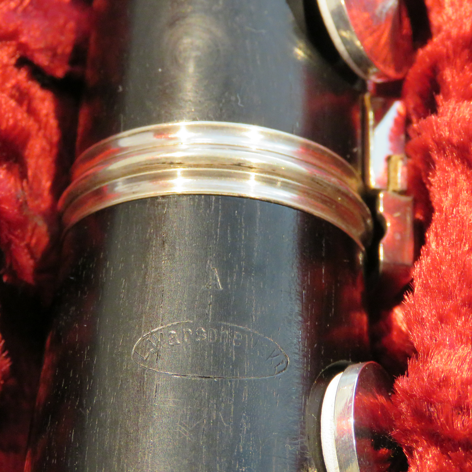 Seltene A-Klarinette im deutschen System von Ludwig Warschewski, Grenadilholz mit versilberter Mechanik, Volloehler-Modell mit tief-E-Verbesserung, mit zwei Birnen, alle Teile mit orig.Stempel von Warschewski, generalüberholt im Doppelkoffer.
