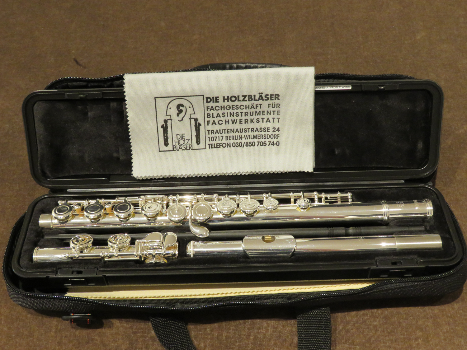 Gebrauchte Querflöte von Yamaha Modell YFL 212, Korpus und Mechanik Neusilber, versilbert. Die Flöte ist ca. ein halbes Jahr alt. Sie hat einige kleine Kratzer und befindet sich ansonsten in einem gutenZustand. Wir verkaufen das Instrument mit Etui und Etuiüberzug. Ausstattung: Deckelklappen, C-Fuß, E-Mechanik und vorgezogenes G