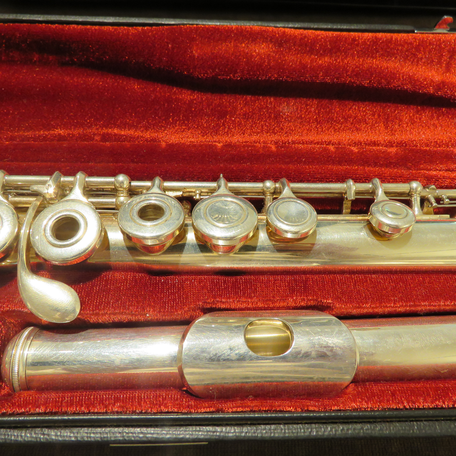 Silberrohrquerflöte von Yamaha Modell YFL 471. Die Flöte befindet sich in sehr gutem Zustand. Wir verkaufen das Instrument im Kundenauftrag im originalen Etui. Ausstattung: Ringklappen, C-Fuß, E-Mechanik und vorgezogenes G