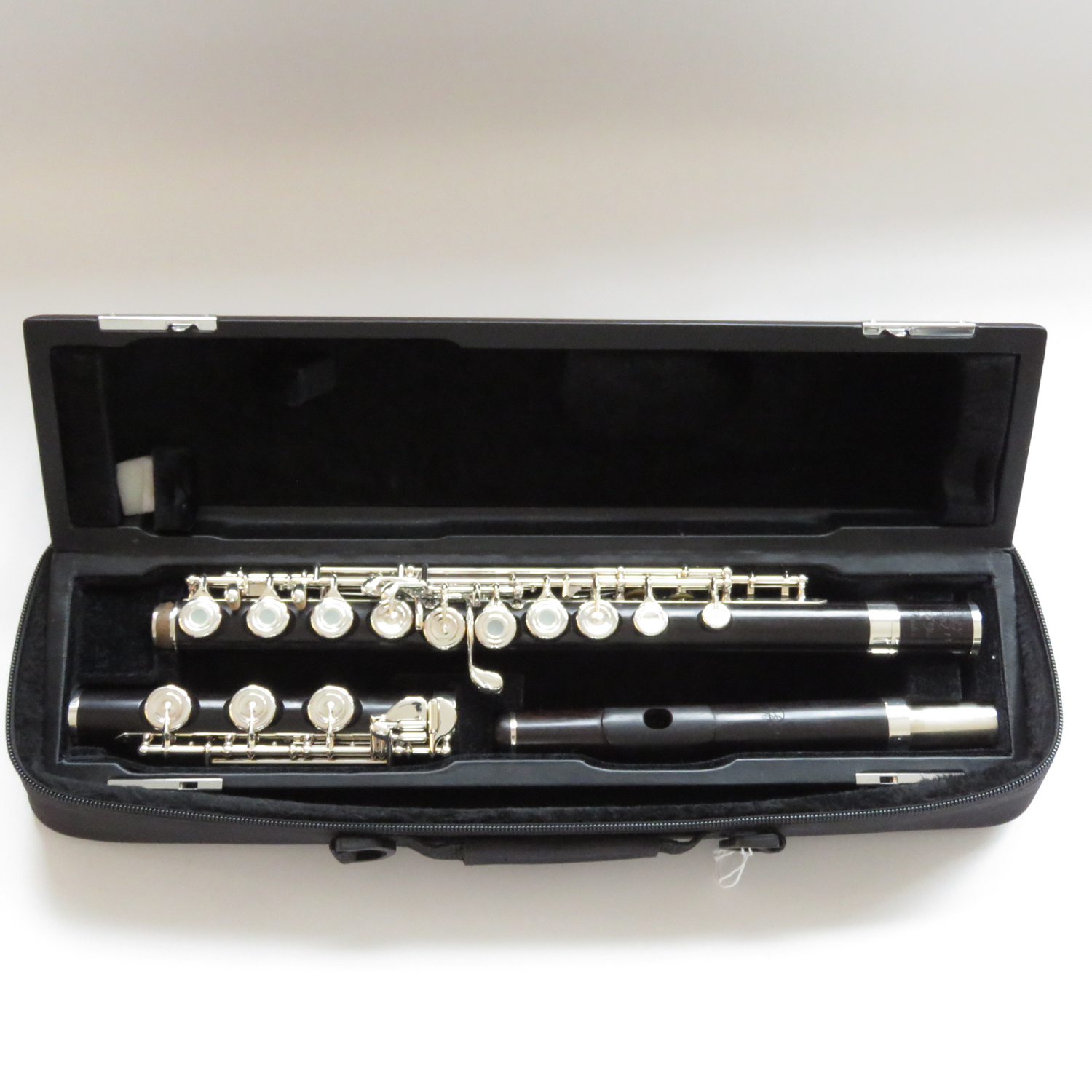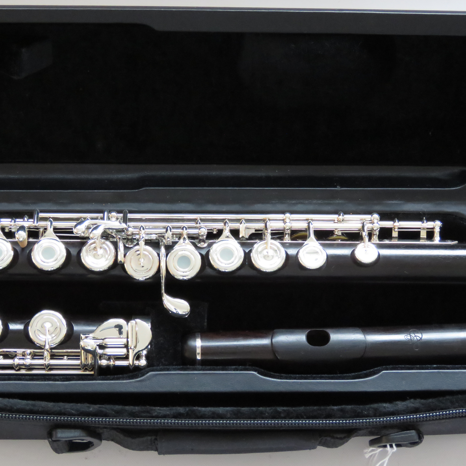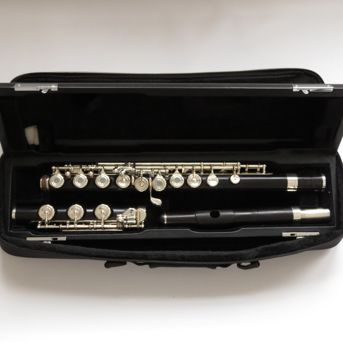 Querflöte von Di Zhao, Korpus aus Grenadillholz und Mechanik Neusilber, versilbert, aus dem Jahr 2024 in sehr gutem Zustand. Wir verkaufen die Flöte mit Etui und Überzug im Kundenauftrag Ausstattung: Ringklappen, H-Fuß, E-Mechanik, vorgezogenes G und Spitzdeckelmechanik