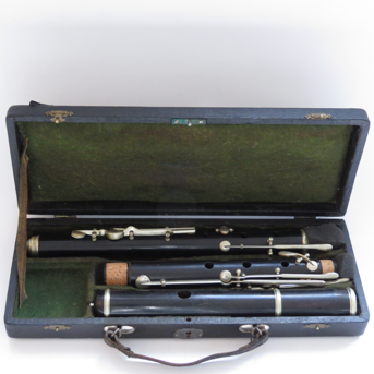 Traversflöte gebraucht aus Grenadillholz. Geklebter Riss an der "Kopfstückbirne". Die Flöte ist mit neuen Korken versehen, gesäubert und geölt und lässt sich gut anspielen.