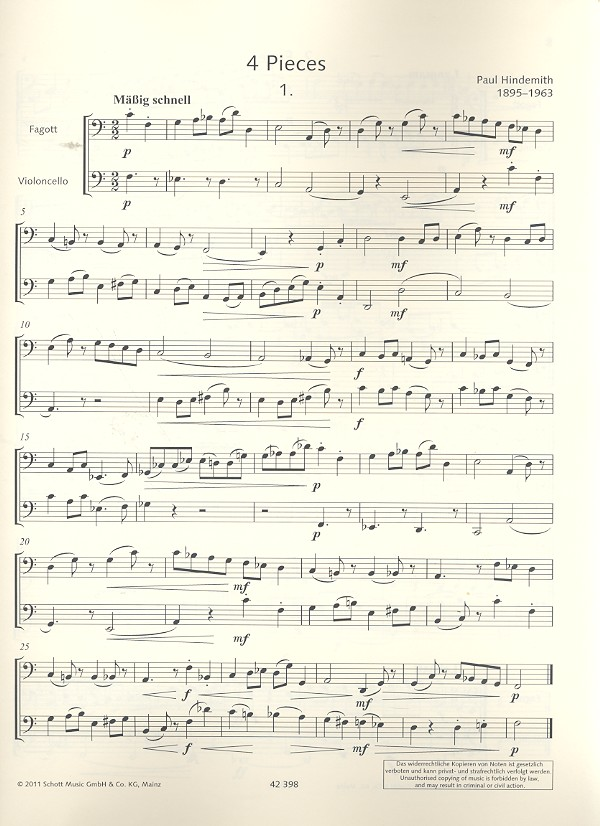 Hindemith, 4 Stücke für Fagott und Violoncello