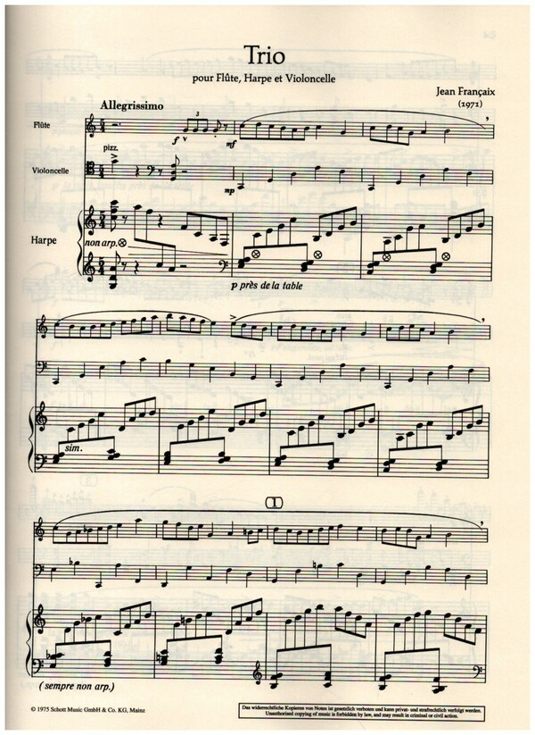 | Trio für Flöte, Harfe und Violoncello Partitur und Stimmen | |