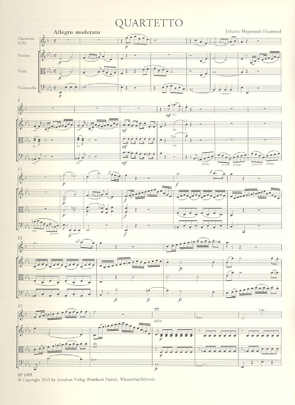 | Quartett Es-Dur für Klarinette, Violine, Viola und Violoncello Partitur und Stimmen | |