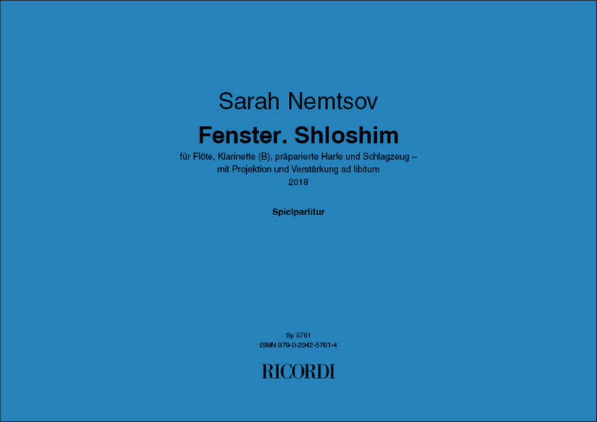 | Fenster. Shloshim Flute, Clarinet, Harp, Drum Set Score | |