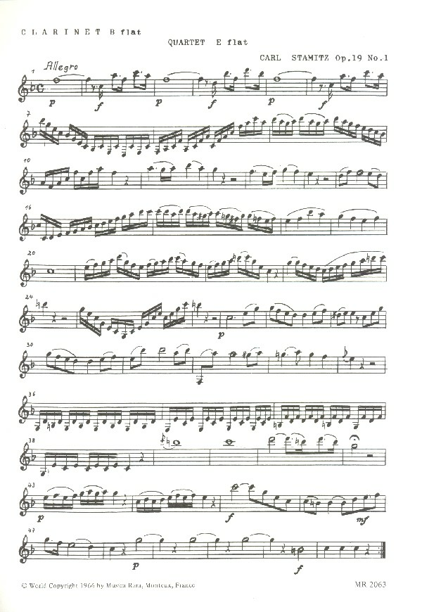 | Quartett Es-Dur op.19,1 für Klarinette und Streichtrio Stimmen | |