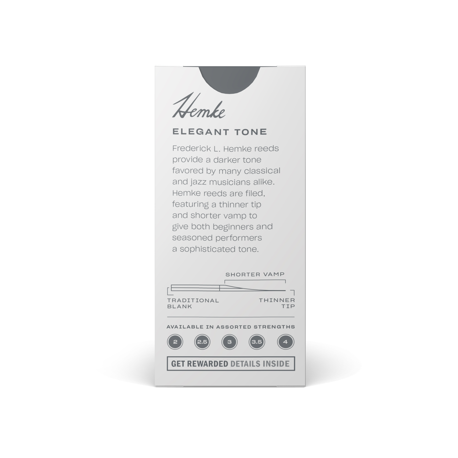 - Frederick L. Hemke Blätter sind „filed“ und bieten eine dünnere Blattspitze und kürzeren Ausstich für schnelle Ansprache. Sie sind bei Jazzmusikern und klassischen Spielern gleich beliebt; auch fortgeschrittene Schüler bevorzugen sie. Die aufgerüsteten Blatt-Fertigungsmaschinen von Rico und modernste Verfahren machen Hemke Blätter heutzutage gleichförmiger denn je.